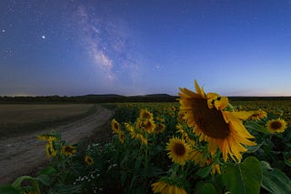 Twilight Sunflowers and The Milky Way